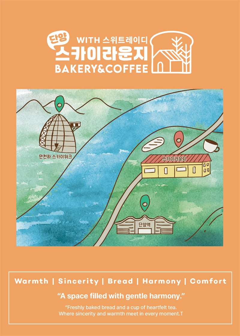 이곳의 대표는 “단순히 빵을 파는 것이 아니라, 여행객이 편히 머물 수 있는 공간을 만들고 싶었습니다”라고 전한다. 그 말처럼 스카이라운지는 여행 중 잠시 숨을 고를 수 있는 곳, 지역 주민에게는 일상의 쉼터로 기능하고 있다. 특히 만천하 스카이워크, 도담삼봉, 단양강 잔도 등과 가까이에 자리한 덕분에 여행 동선상 ‘단양의 관문 카페’로 활약하고 있다.