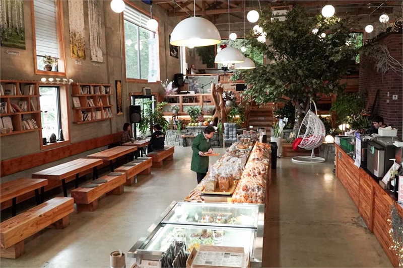이곳의 하루는 갓 구운 빵 향기로 시작된다. 아침마다 오픈에 맞춰 다양한 베이커리를 준비하여 손님을 맞이한다. 단양 특산 마늘을 활용한 마늘빵, 무화과 파운드, 마카다미아 크림라떼 등이 대표 메뉴다.